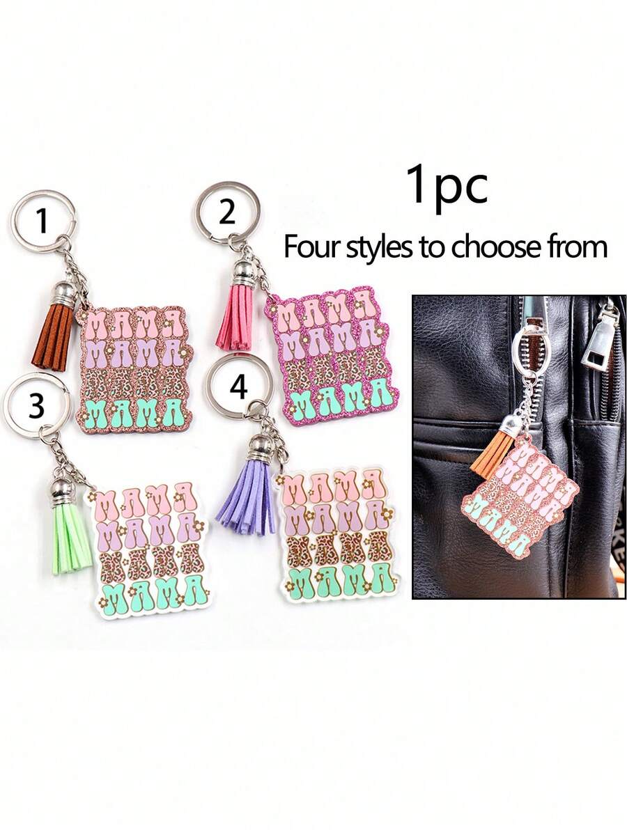 1個mama字樣亮片鑰匙扣,豹紋流蘇钥匙链母親節禮物,轉換手袋、背包、汽車鑰匙,女士mama吊飾手袋配件,送給母親的愛心禮物,情人節鑰匙扣吊墜