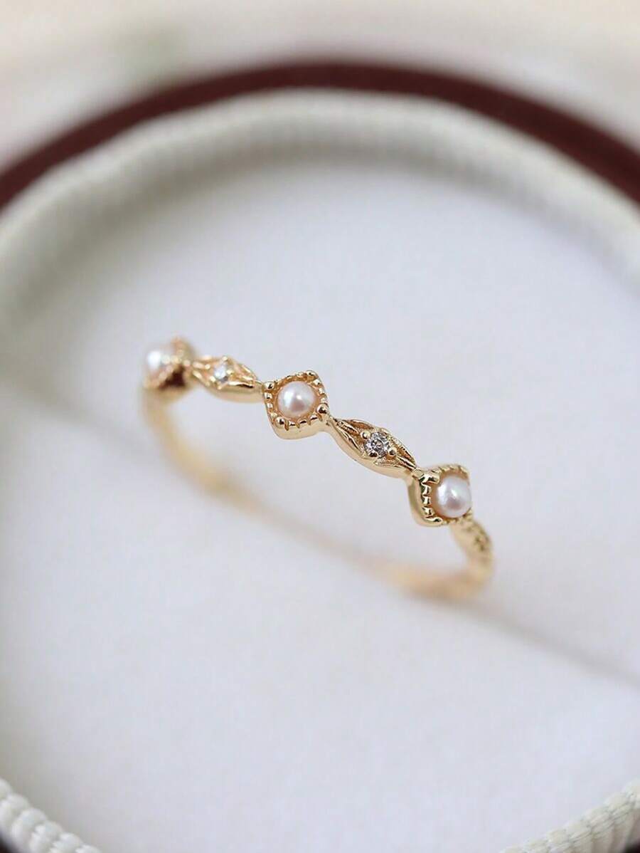 1 件 S925 纯银优雅复古人造珍珠女士戒指女士精美珠宝礼物生日礼物派对礼物