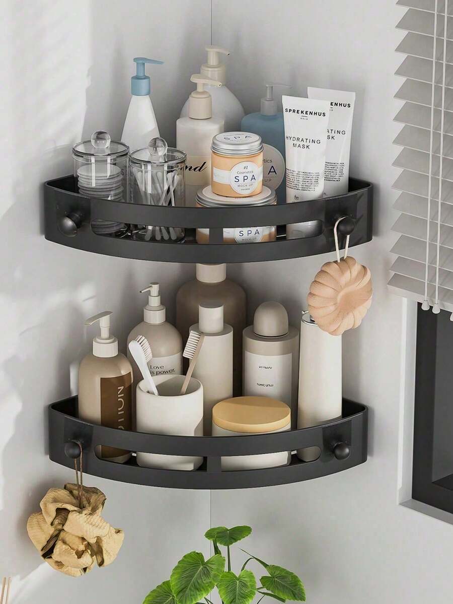 1个/2个装淋浴角置物架,PP材质,收纳架,整理架,适合家庭使用,可用于浴室、厨房,放置洗发水、沐浴露、化妆品等,节省空间,易于安装,防滑设计,浴室配件,淋浴置物架,房车必备,家居装饰浴室配件浴室工具