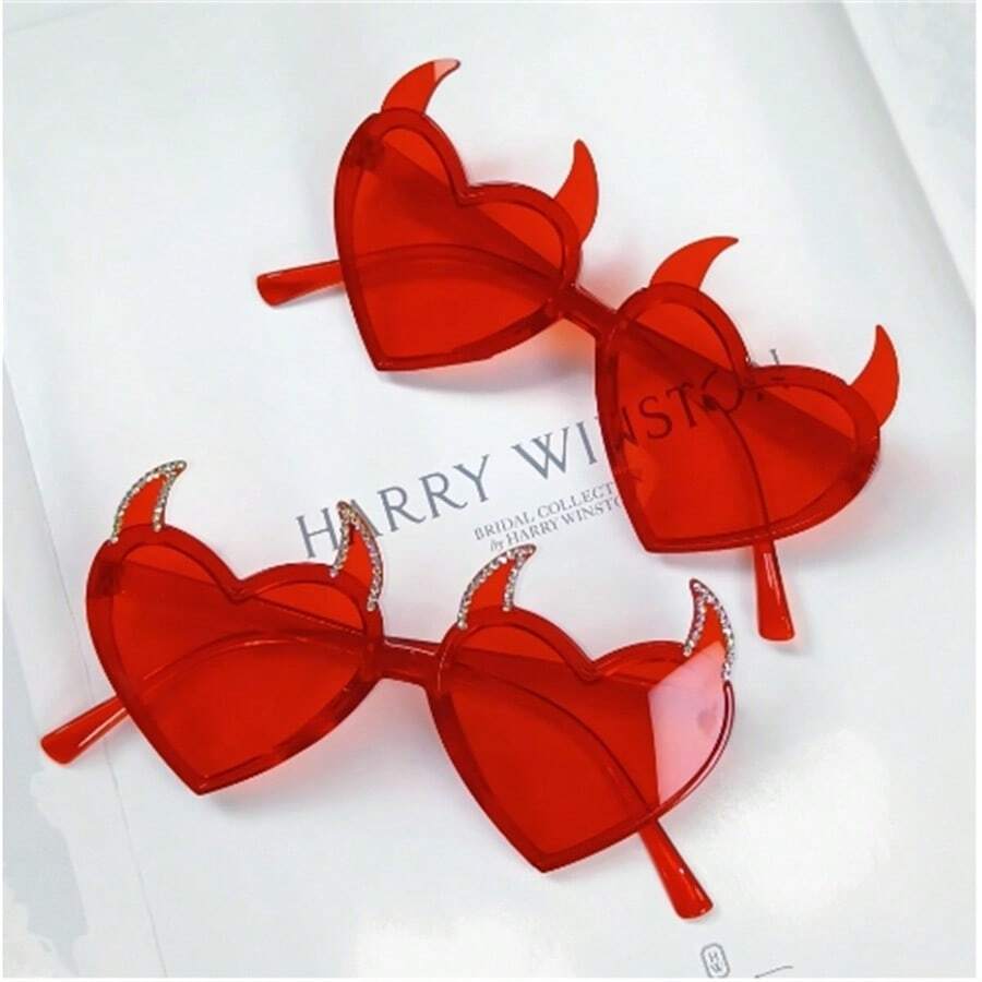 1 件派对眼镜魔鬼角装饰眼镜时尚生日派对太阳镜,万圣节服装女士,红心皇后服装,红心皇后服装,红色太阳镜,成人服装,Bratz,红色翅膀