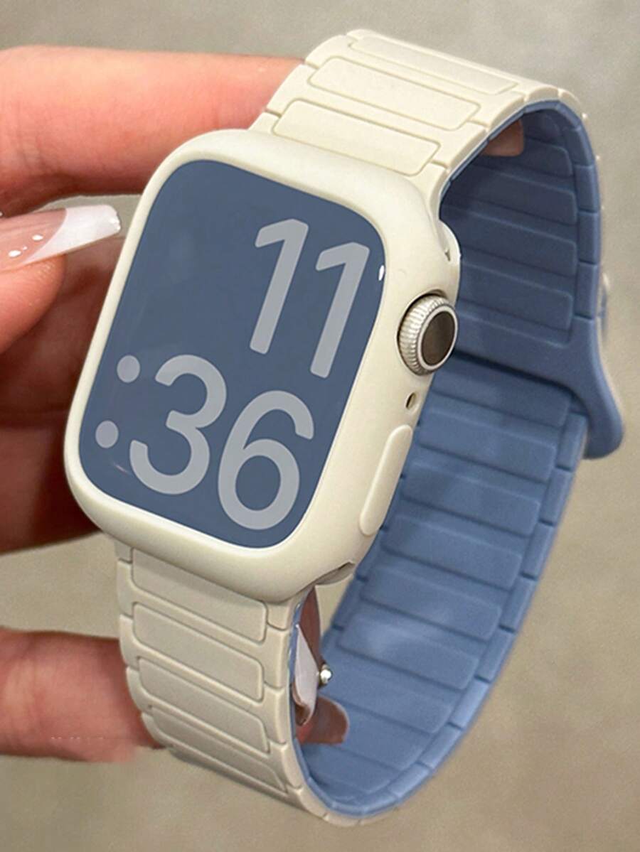 一套双色磁扣硅胶表带 + 表壳,兼容 表带 46mm 38mm 40mm 41mm 42mm 44mm 45mm 49mm,可爱糖果色腕带,带保护套,兼容 Series 11 10 9 8 7 6 5 SE Ultra 2