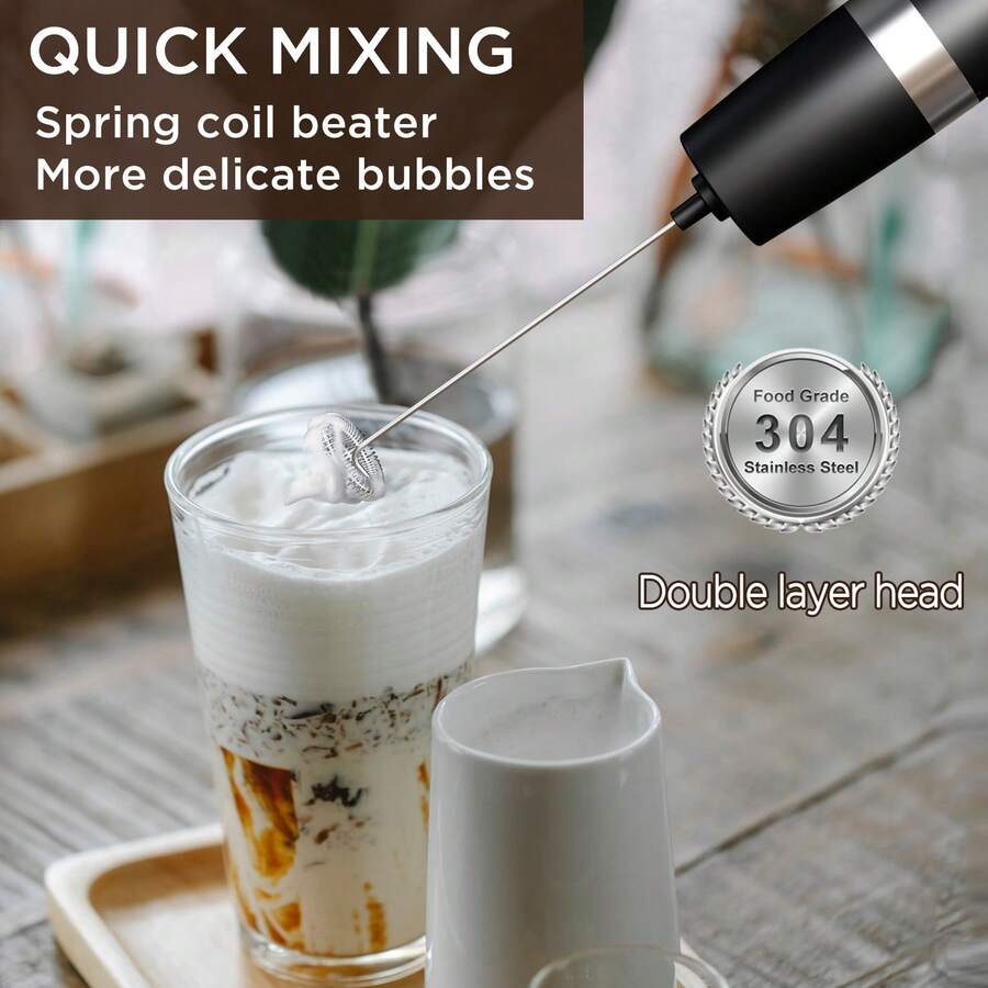 1 件强力电动奶泡器,迷你奶泡器,电池供电(不包括)不锈钢饮料搅拌机,手持电动搅拌机,适用于咖啡、拿铁、卡布奇诺、巧克力、抹茶、起泡器