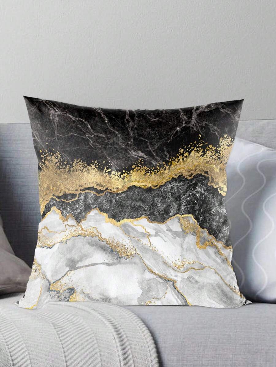 1入45*45cm白金大理石風格的方形枕套,聚酯桃花紋材料的坐墊套,柔軟的枕套適用於房間床上沙發裝飾,家居飾品裝飾,枕芯不包含在內