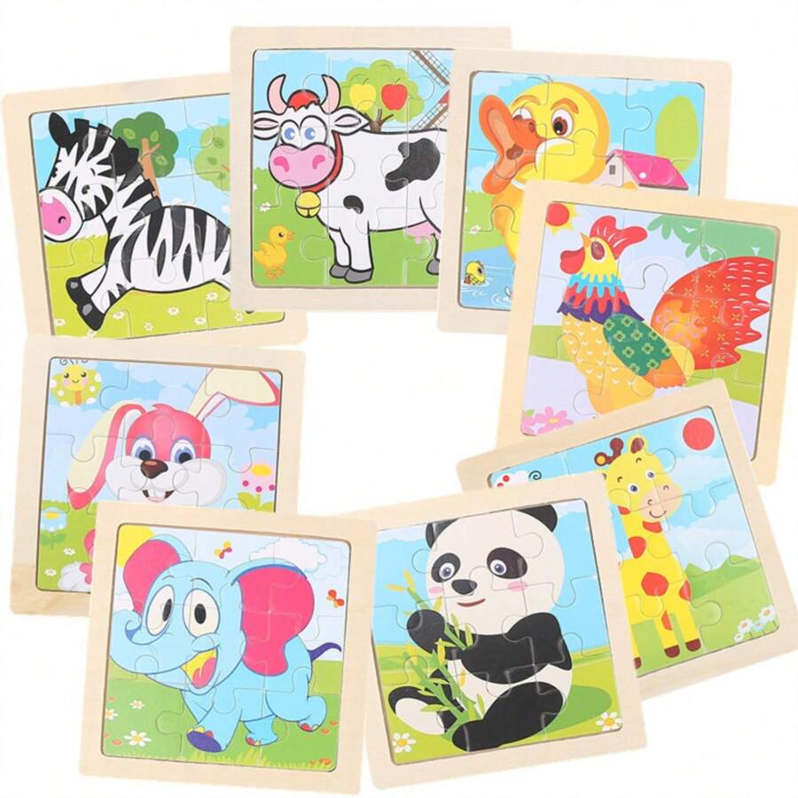1件/4件儿童拼图卡通动物汽车木制拼图早教拼图木制玩具麦克风玩具多款式车辆交通熊鸭子狐狸恐龙老虎狮子熊猫动物拼图生日派对礼物早教玩具礼物,拼图,儿童玩具,木制玩具