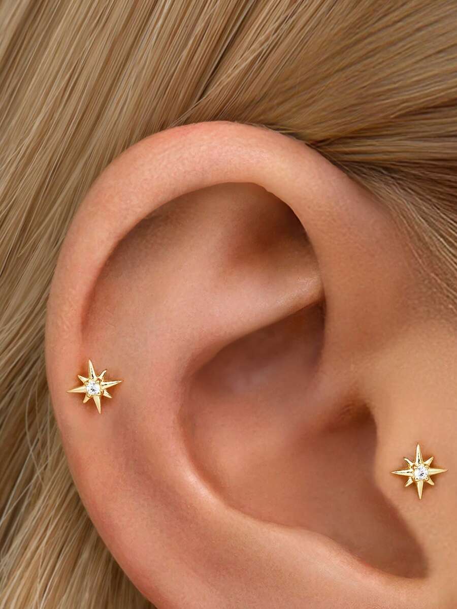 1件925纯银星形内螺纹唇钉 | 星形耳钉穿刺饰品 | 低过敏性金耳软骨钉 | 扁平唇钉 | 适合女性日常佩戴