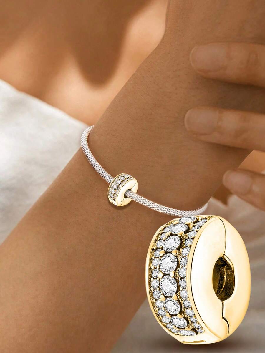 1颗925纯银锆石底座扣环吊坠珠,适合DIY手链,女士饰品。
