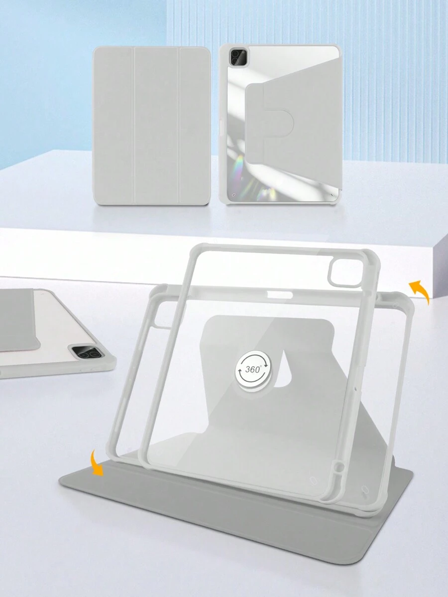1 个可调节 360° 旋转灰色亚克力三折支架、亚克力后壳采用防刮擦和防弯曲设计、内置笔槽、磁性自动睡眠/唤醒、极简主义/经典/平板电脑保护壳,兼容 iPad Mini6/Mini7/Air/Air2/9.7/10.2/10.5/Air4/Air5/10.9/Pro 11 英寸/Air11(M2)2024/10th Gen/12.9/iPad Air 13(M3 2025)/iPad Air 11 英寸 (M3) 2025/iPad (A16) 11 英寸第 11 代 2025