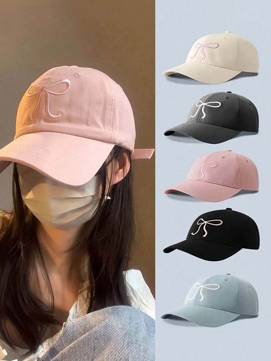 1 件可调节棒球帽,粉色蝴蝶结刺绣 - 甜美可爱风格,四季可折叠涤纶帽,按扣闭合,送给女性的完美礼物,刺绣棒球帽