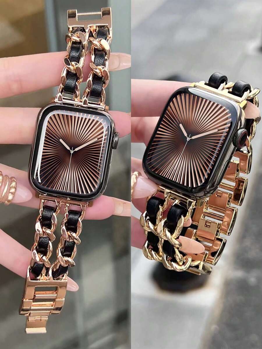 1 件可调节不锈钢玫瑰金表带,时尚经典设计双链真皮表带,兼容 Series 1-9、SE,38 毫米 40 毫米 41 毫米 42 毫米 44 毫米 45 毫米 49 毫米,男女通用礼物