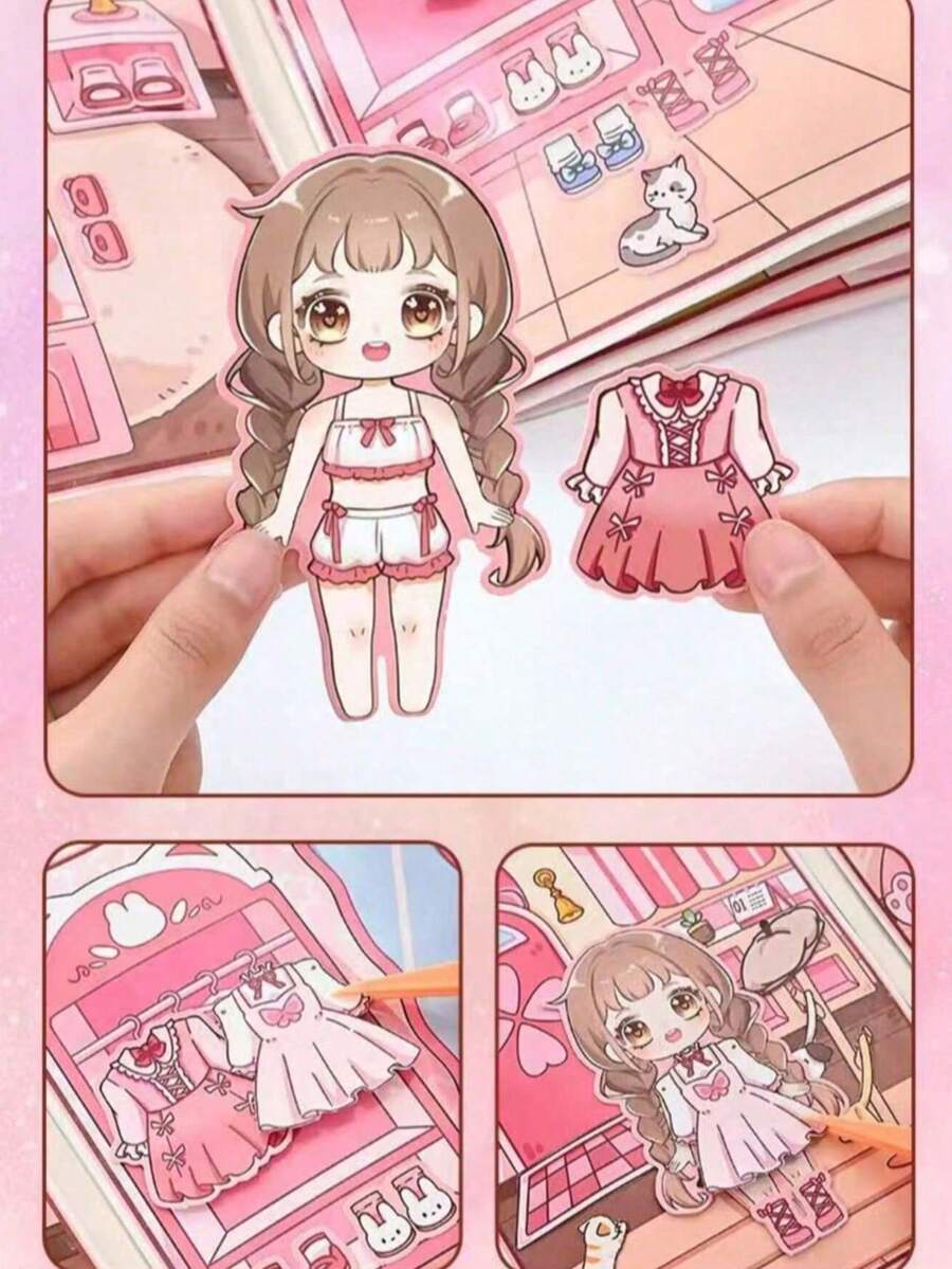 1本全尺寸卡通Mani Mani日常生活纸质安静书,粉色手工DIY安静书,附材料,无需裁剪,减压挤压剪贴簿。适合作为送给朋友、孩子、生日、派对、新年、圣诞节的贴心礼物。
