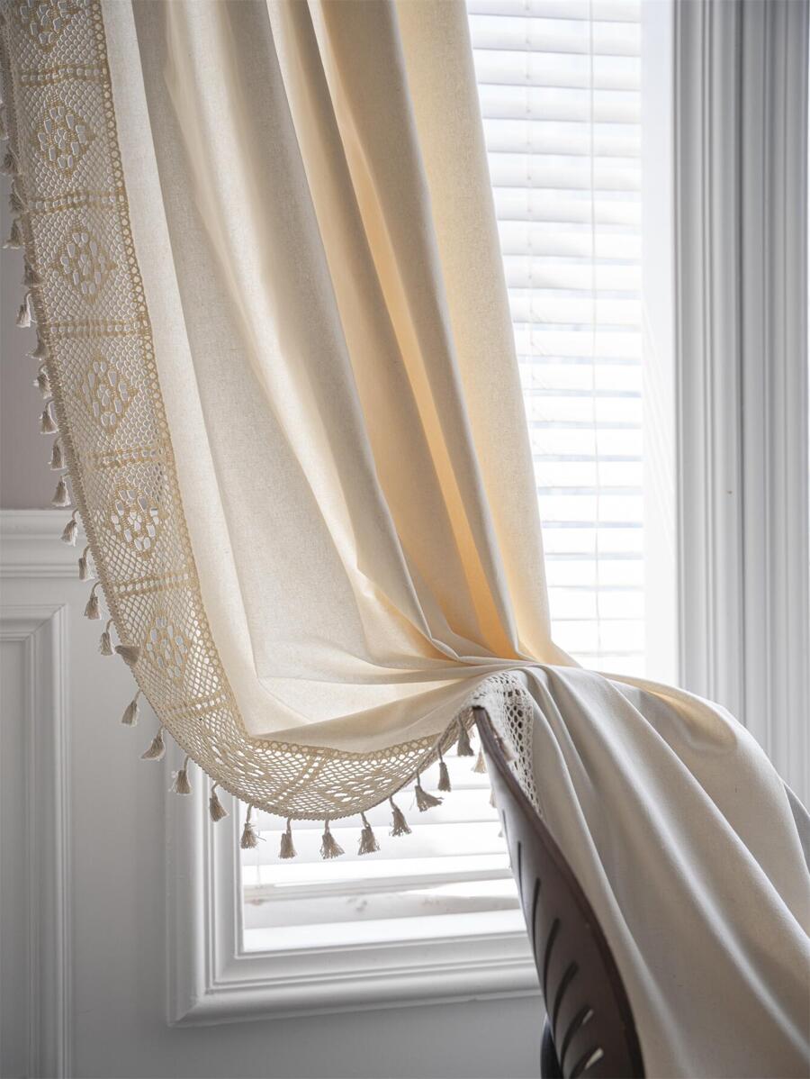 Bubaba 1 件米色镂空装饰窗帘,波西米亚涤纶蕾丝流苏透明遮光窗帘,适合家庭卧室客厅餐厅厨房窗户门咖啡店,所有季节