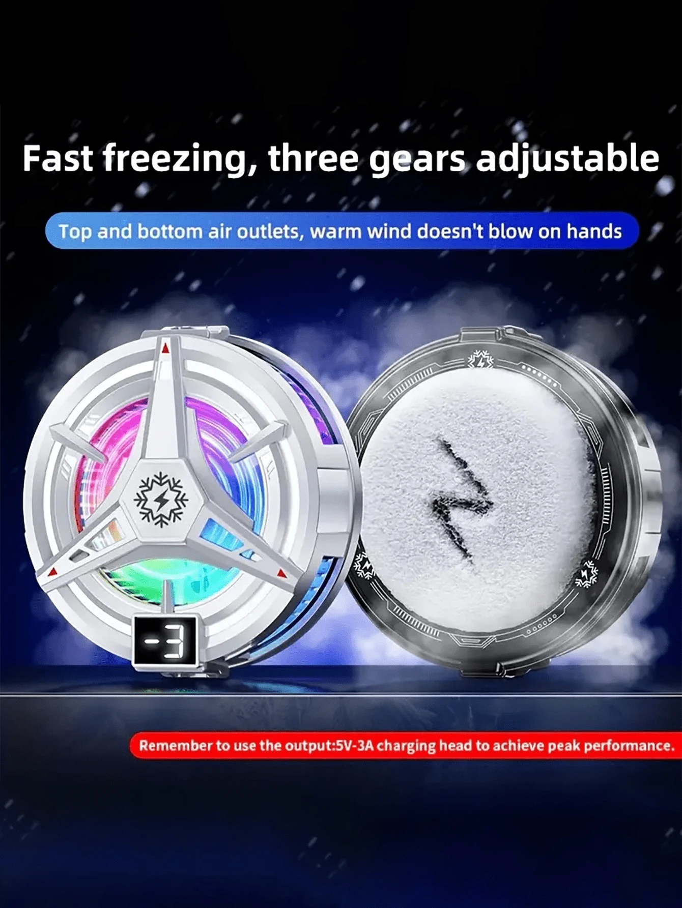 1个黑色磁吸式RGB灯效手机散热器,带温度显示风扇半导体散热片手机散热夹游戏散热神器