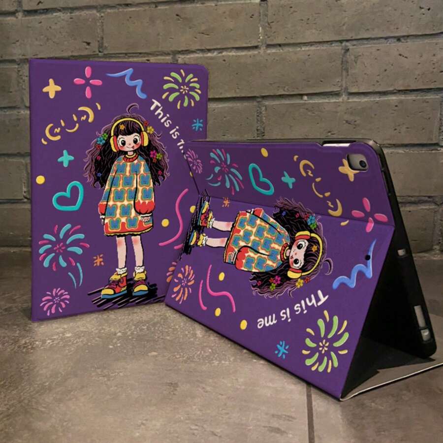 1 件,黑色硅胶软壳 iPad 保护套 Pro 2024 13 英寸/5/6/7/Pro 11 英寸 1st 2nd /Air6 2024 4th 5th Gen/8th /9th Gen/10th 代,Tpu 硅胶防震防摔,PU 皮革保护套,自动唤醒/睡眠,紫色耳机女孩图案,带支撑槽 iPad 保护套
