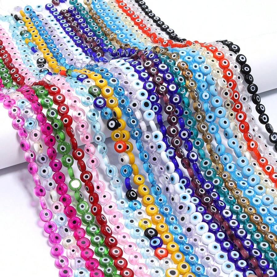 约 60 颗彩色千花玻璃珠,透明魔鬼眼扁圆珠 6 毫米,万圣节礼物 DIY 珠宝制作材料,适用于手链、项链、手机饰品