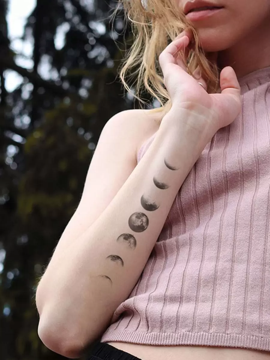 1张彩色月亮图案纹身贴纸,满月和新月设计,韩式风格,Y2K,Kpop,防水,防汗,不反光