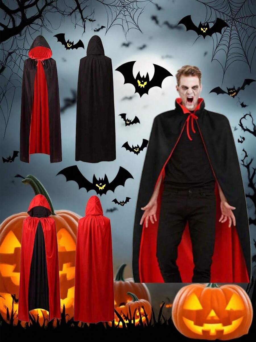• 1 件酷炫万圣节角色扮演双面黑红连帽斗篷 - 非常适合派对和节日装扮道具,可扮演吸血鬼或任何其他角色 - 彩色 - 查看 7
