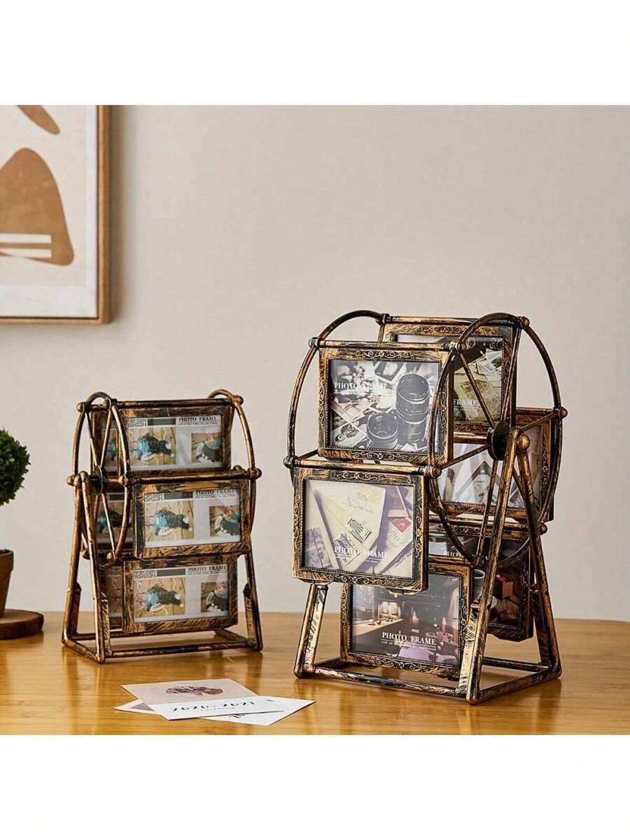 1个创意复古旋转摩天轮相框 - 4英寸/5英寸个性化家庭相框,可容纳12张照片,需自行组装,包含ABS塑料相框和随机图案插片 - 生日礼物、家居装饰、办公桌配件、情人节惊喜、复活节纪念品、客厅装饰、家庭回忆珍藏