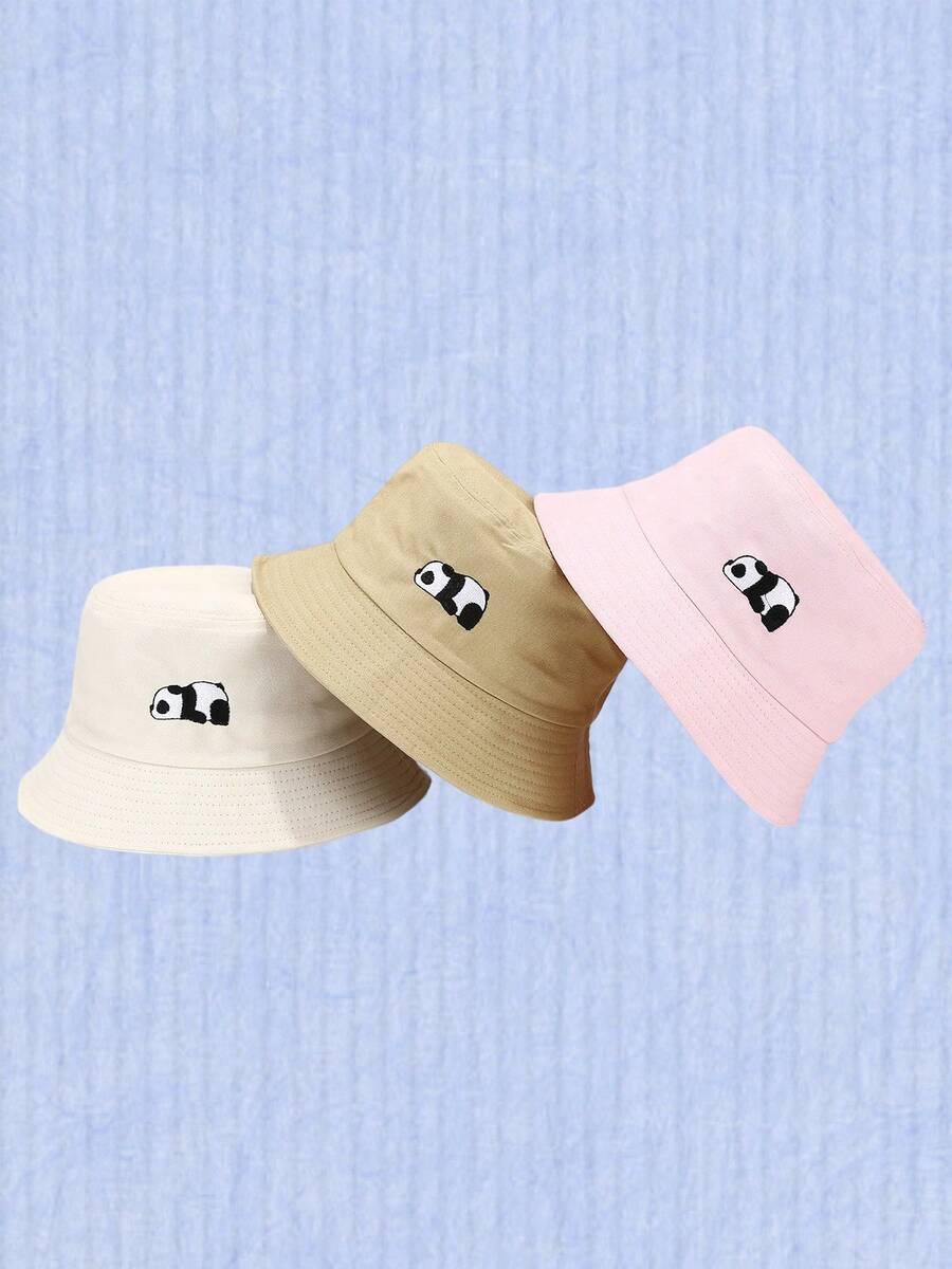 1顶可爱小熊猫刺绣渔夫帽,女士款,时尚户外韩版风格,四季皆宜,夏季遮阳帽