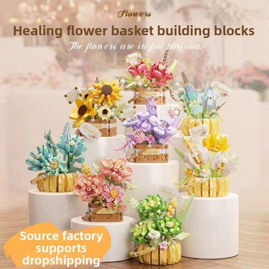 1件DIY创意拼图永生花篮,包含玫瑰、向日葵、紫罗兰、郁金香、康乃馨、菊花、扶桑花,浪漫花卉盆栽装饰,生日/万圣节/圣诞节礼物