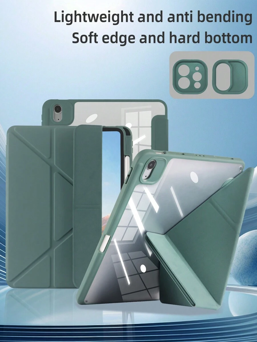 1 件深绿色亚克力 Y 型折叠扁平保护壳,多折叠多角度支架带笔槽,亚克力后壳防刮防弯曲,磁性自动睡眠/唤醒智能省电,简约/休闲/经典设计,兼容 iPad Mini6/Mini7/9.7/10.2/10.5/Air4/Air5/10th/10.9/Pro11/Air11(M2)/Air13(M2)/Pro11(M4)/Pro13(M4) 2024 12.9 英寸。由于光线不同,可能存在轻微色差。