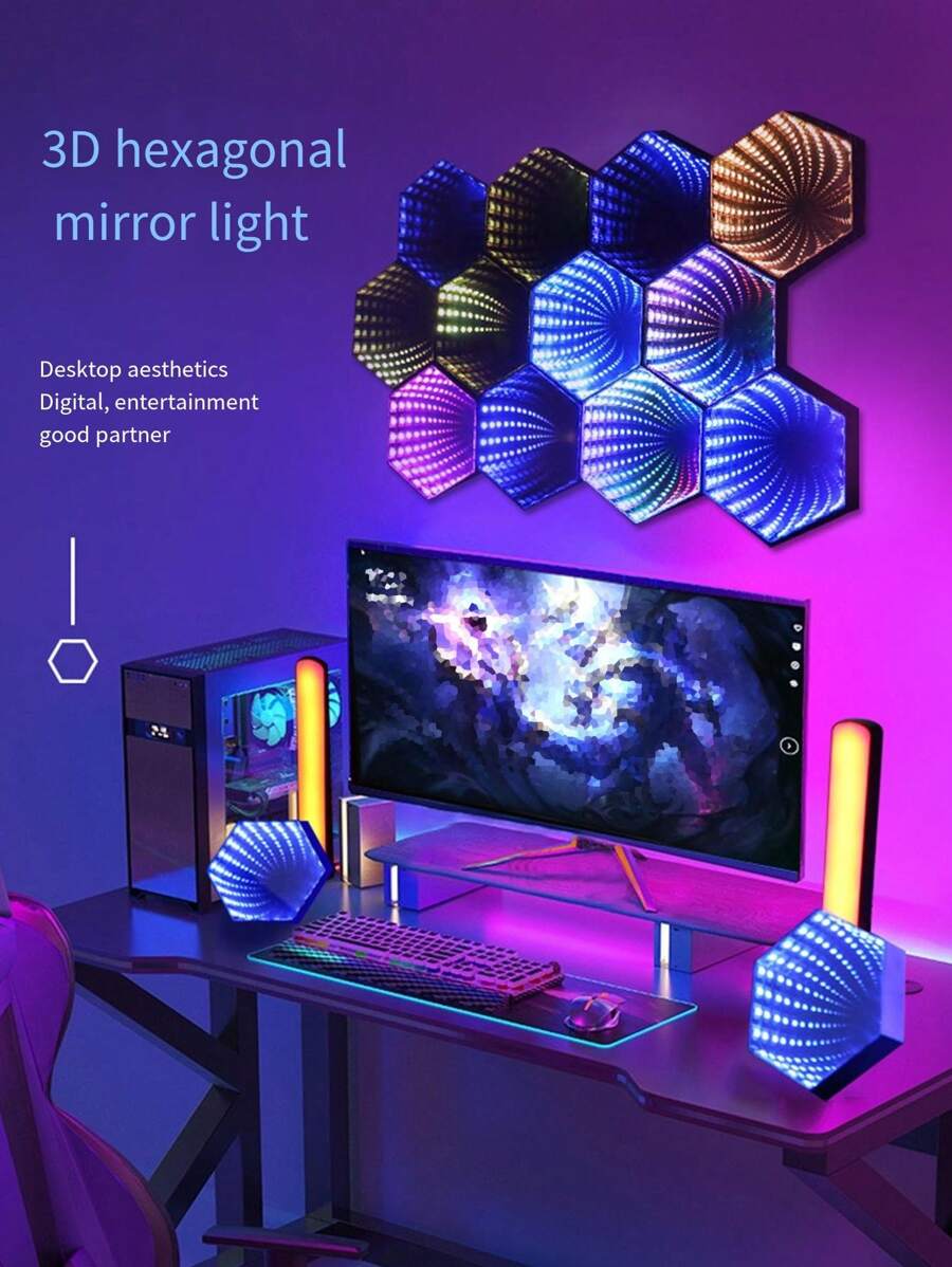 1入組桌面rgb遊戲燈,遙控器,聲音感應和音樂功能