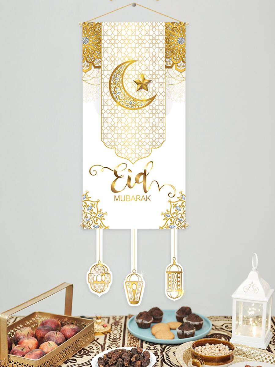 1入組開齋節月亮和星星圖案裝飾橫幅波西米亞滌綸燈籠和節日月亮印花橫幅
