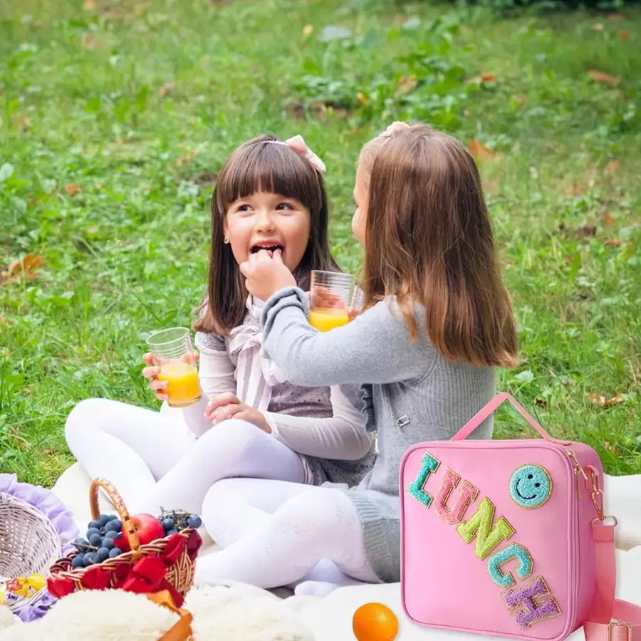 1 件刺绣字母和笑脸户外保温午餐手提袋,便携式食物野餐冷藏袋