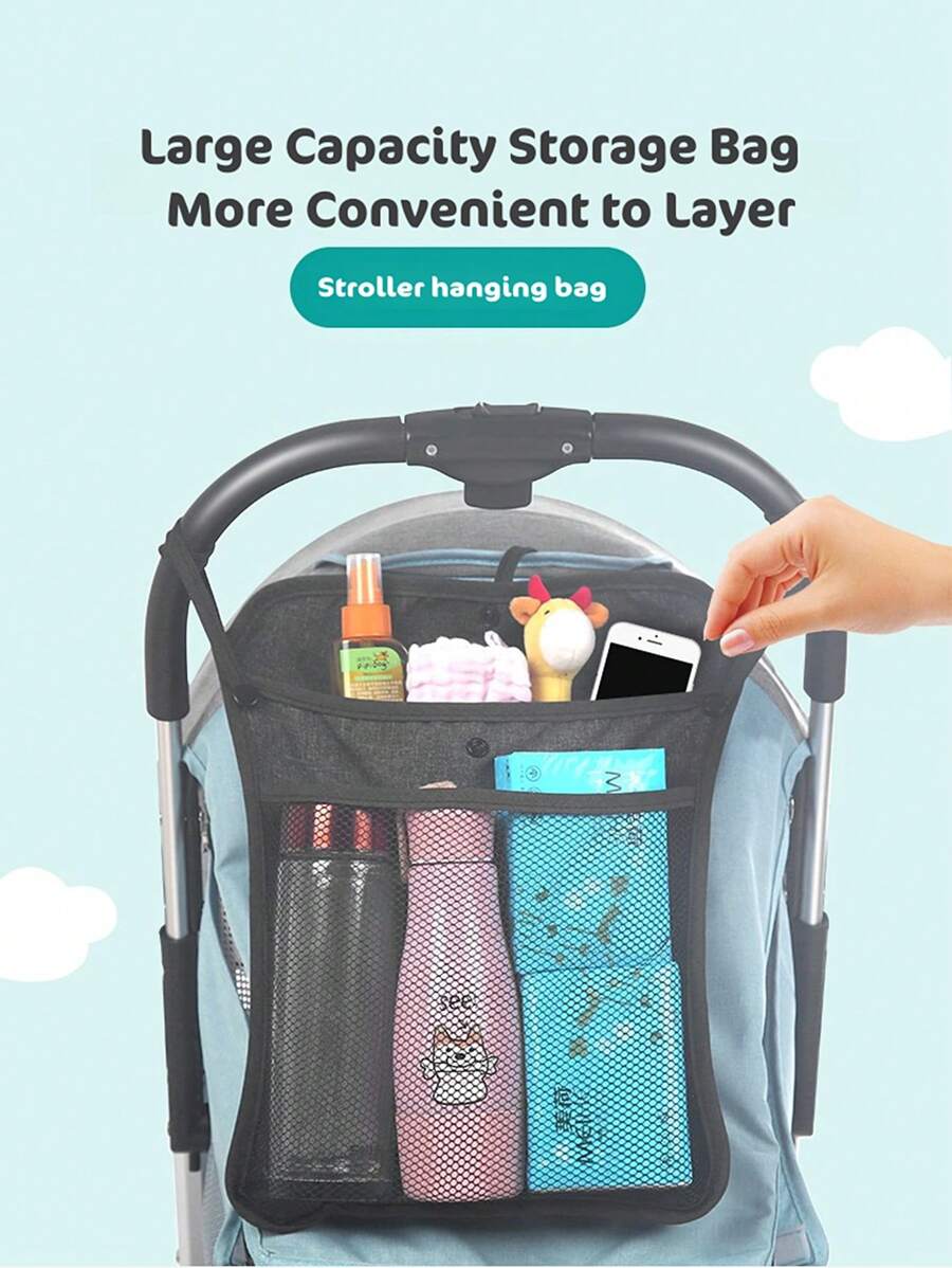 1 件超大婴儿推车收纳袋,带双层网,适用于婴儿推车挂袋