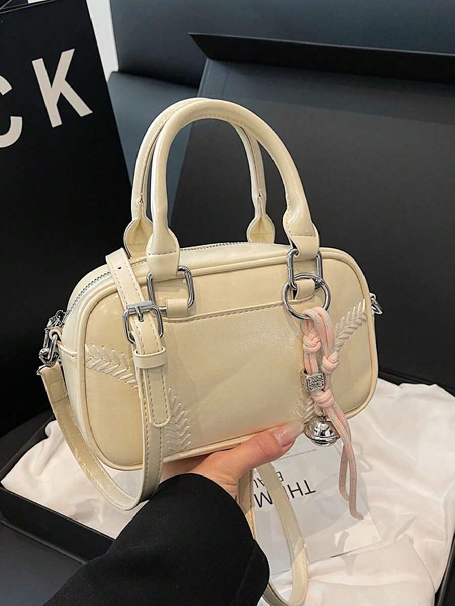 1 件时尚 PU 皮革斜挎单肩保龄球包,简约时尚迷你包,附带编织绳饰物