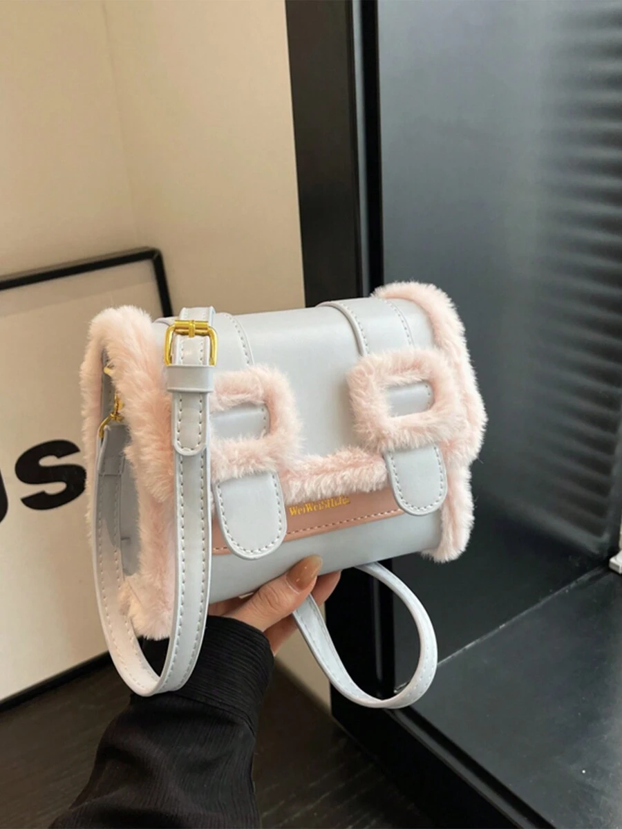 1 件時尚毛絨 Pu 斜挎包,優雅、精緻、奢華、華麗設計,非常適合通勤、旅行、情人節,簡單而別緻,大容量,適合女士冬季作為肩背包或斜挎包攜帶