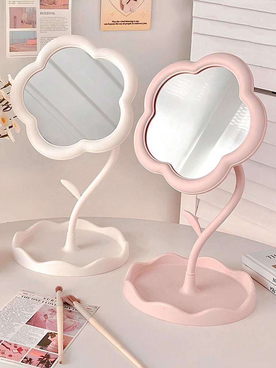 1个带托盘的花朵造型化妆镜,可旋转桌面镜,适合宿舍使用,便携式梳妆镜,可用于书桌、卧室、浴室、客厅等家居装饰,是夏秋两季的理想化妆镜,也是圣诞节/万圣节/情人节送给朋友、家人和学生的礼物。