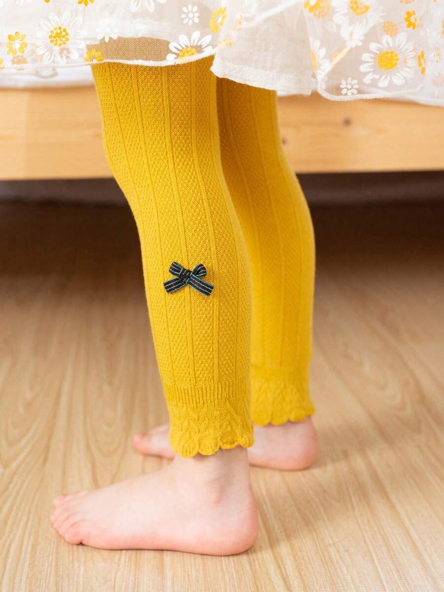 1 件女童蝴蝶结紧身打底裤透气黑/白色连裤袜,适合日常休闲穿着