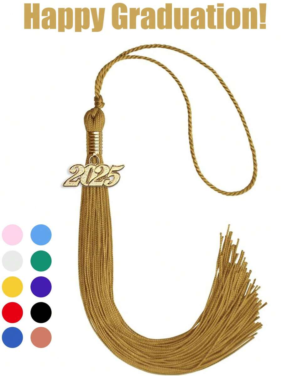 1件毕业纯色流苏,配金色日期吊饰。每个流苏都配有一个年份吊饰,让您自豪地展示您取得成就的具体年份。纯色流苏是完美的配饰,可为您的造型锦上添花,也是您成功的永恒纪念。多种颜色可选。(2025)