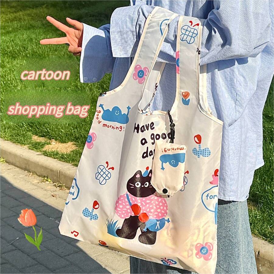 1件装ins风折叠收纳购物袋大容量包高颜值手提包便携式超市购物袋