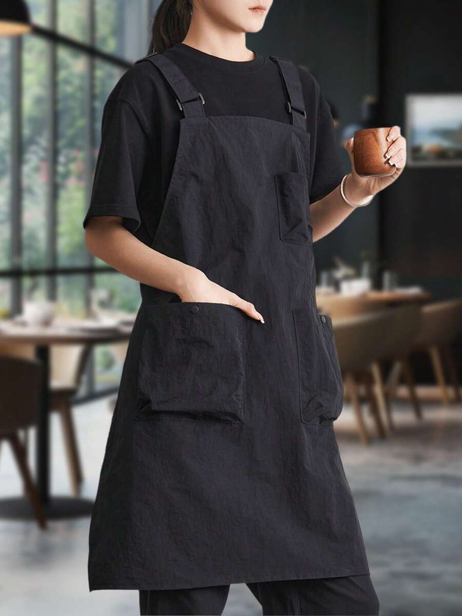 1 件日式纯色双面防水 3 口袋围裙,采用耐用透气尼龙面料制成,适用于家庭厨房、餐饮工作、花卉园艺工作围裙,非常适合母亲节、宰牲节、开斋节礼物