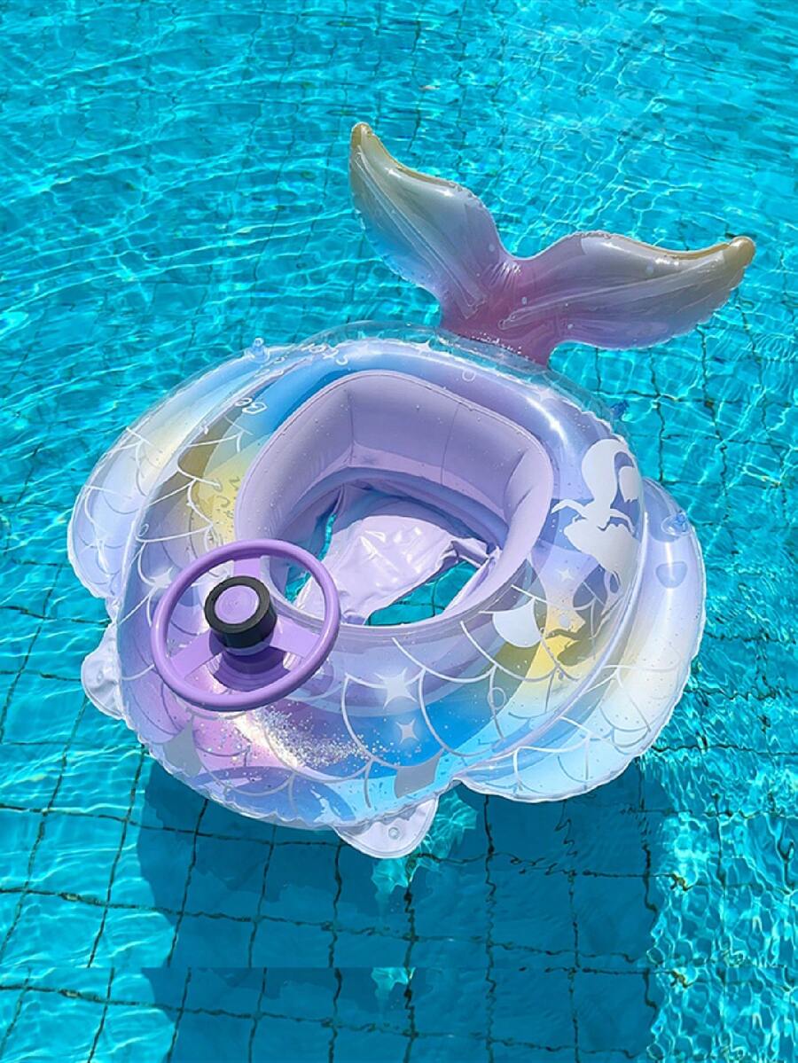 1 件儿童充气游泳圈,加厚防倾倒美人鱼风格水上玩具,适合男婴和女婴的游泳座椅