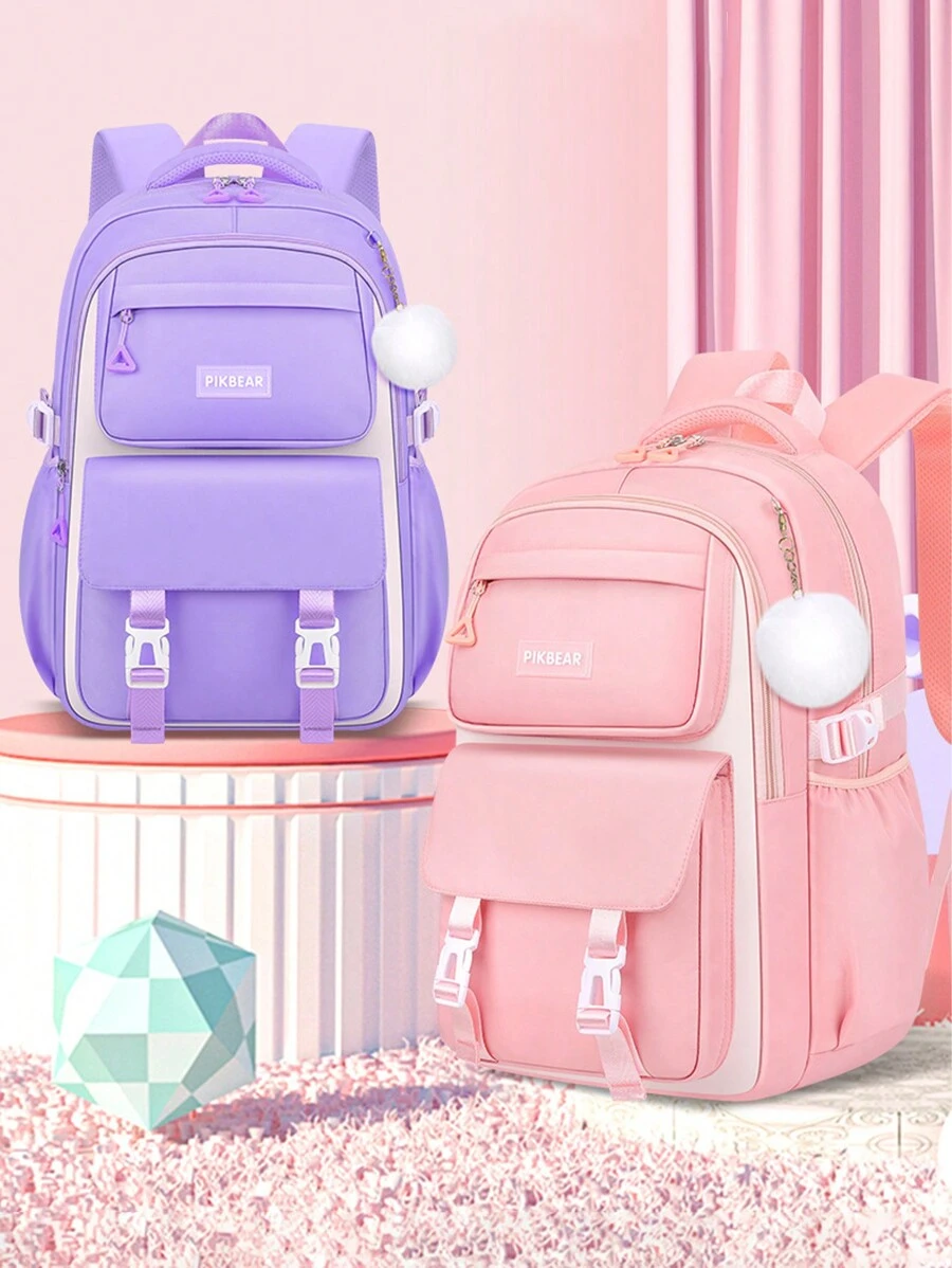 1 件大容量紫色和粉色女孩背包 - 适合上学、户外旅行。轻便、舒适、多功能,配有吊坠。送给女孩的完美生日礼物,返校必备品
