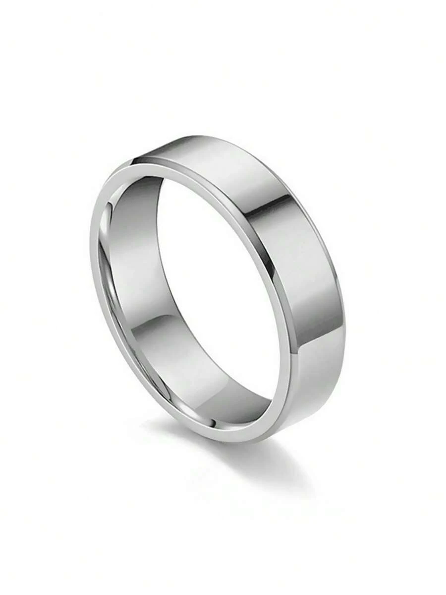 1 件男士 6 毫米宽不锈钢素色戒指,时尚日常百搭