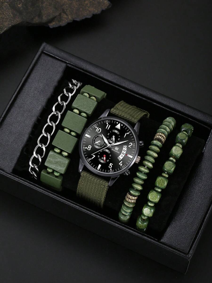1 件男士时尚商务奢华休闲石英表 + 4 件手链套装,日常使用和节日礼物