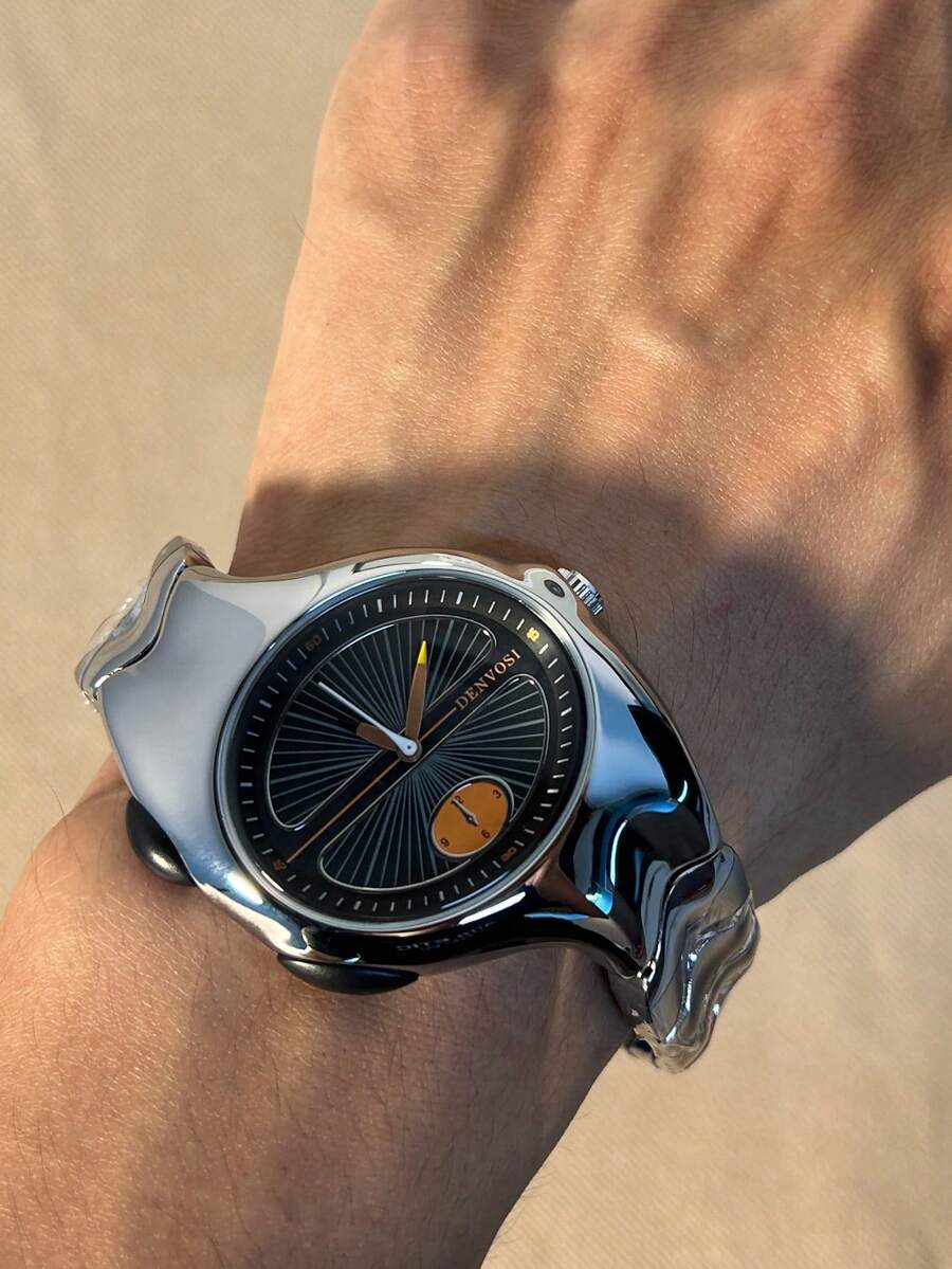 1 件男士复古千禧复古小众扭曲不对称腕表,高品质时尚防水男士石英表