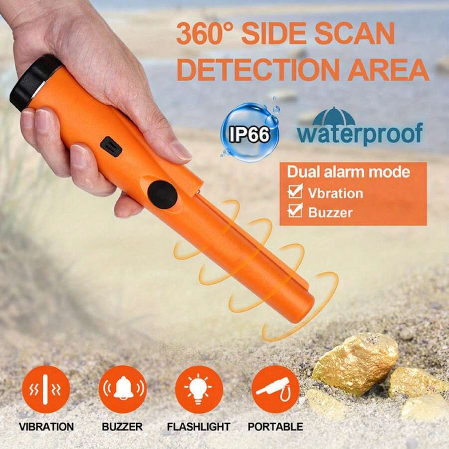 1 件手持式金属探测器,防水 360 扫描矿山宝藏探测器,高灵敏度,包括皮带和皮套,带蜂鸣器振动的黄金寻宝挖掘工具,便携式新款(不含电池)