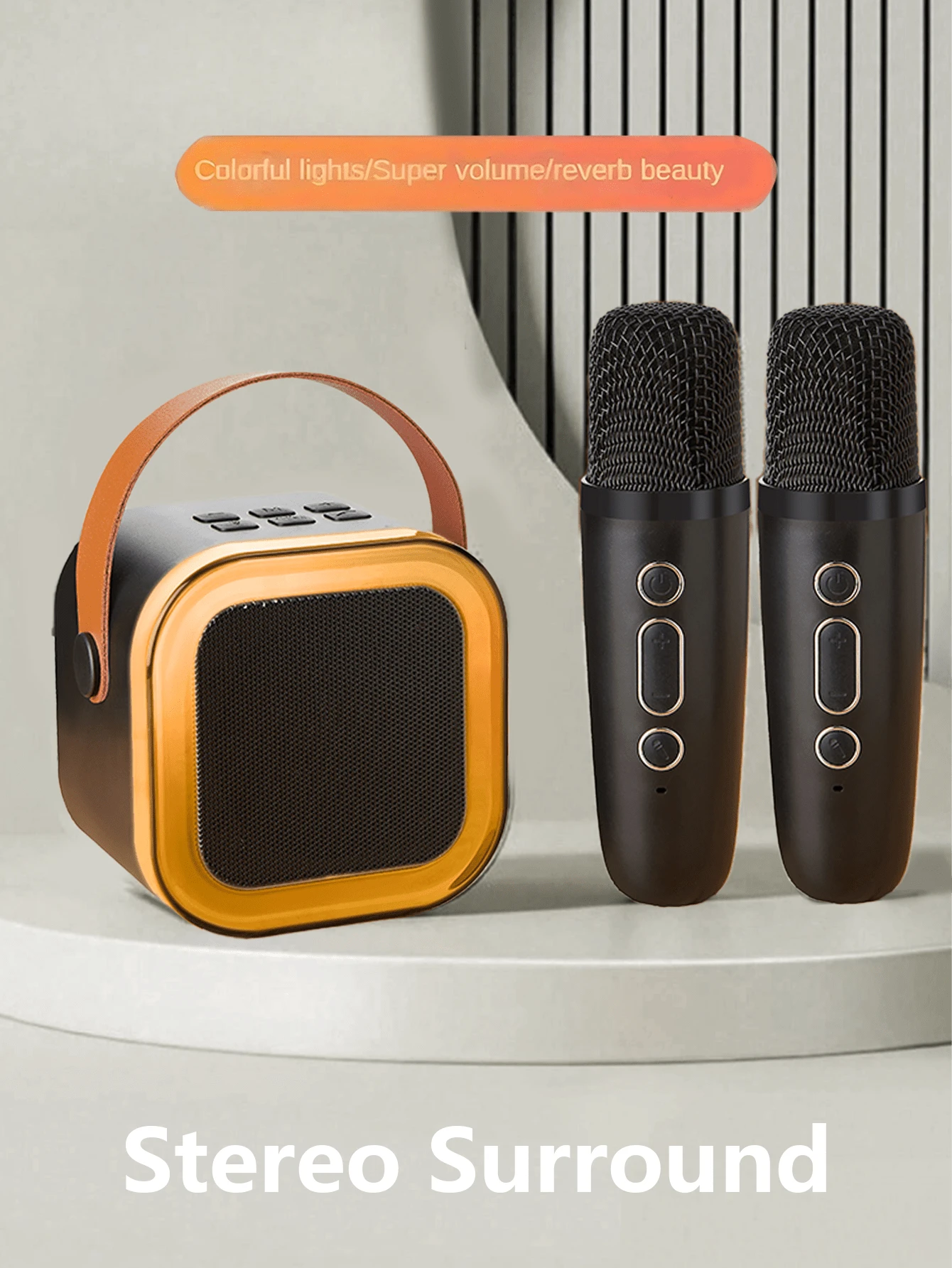 1 件迷你卡拉 OK 机,带 2 个无线麦克风,便携式无线 RGB 照明扬声器套装,家庭卡拉 OK 系统,手持卡拉 OK 麦克风扬声器,适用于家庭聚会、生日、宿舍、返校、学校活动、教室、学生礼物、音乐课、氛围激活器