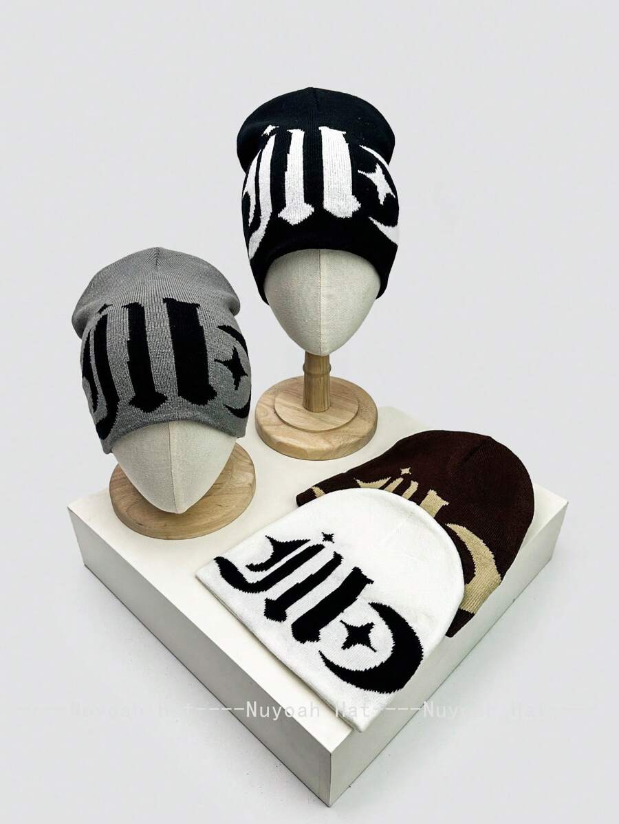 1 件简约百搭梵文防寒帽,男女通用街头嘻哈舞蹈保暖针织帽秋季服装