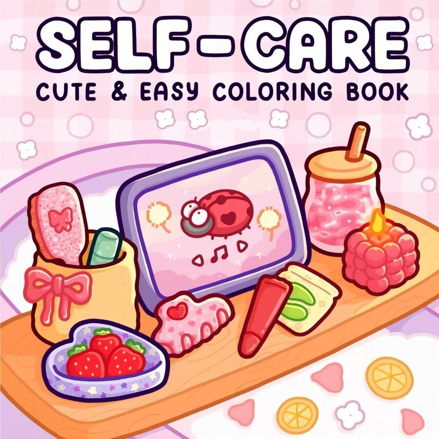 1本全新自爱涂色书 | 适合初学者描摹和涂鸦,缓解压力,包含可爱的小物件图案 | 成人涂色书,简约放松设计,可爱角色助你舒缓压力,厚实不透明,适合作为文具、学习用品,是送给女孩、情人节、新年等节日的绝佳礼物