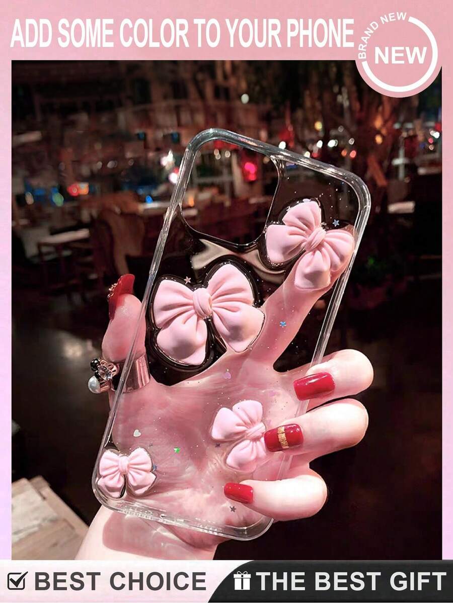 1 件全新闪亮蝴蝶结亚克力二合一手机壳,3D 蝴蝶结手机壳,适用于 11 12 13 14 15 16 Pro Max,节日礼物,女生礼物 Galaxy S23S24S25uS25 Edge 防水防震防摔防刮