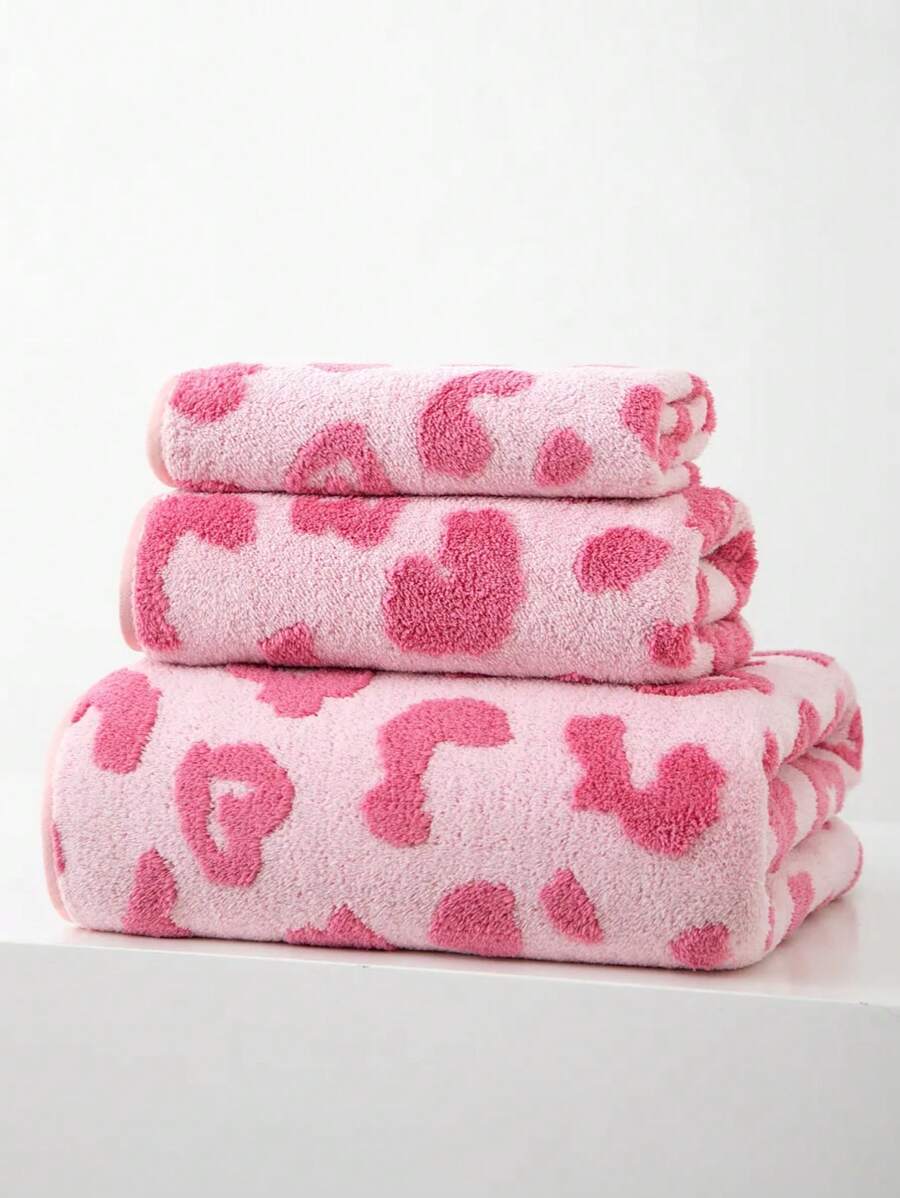 1条粉色毛巾,轻盈透气,提花字母和爱心图案,聚酯纤维材质,长方形尺寸70*140厘米,或厨房/面巾/手巾尺寸34*75厘米,或洗脸巾尺寸34*34厘米。适合男士、女士、情侣、家庭使用,四季皆宜。速干、吸水性强、柔软舒适。适用于浴室、酒店、健身房、节日礼品、派对、海滩、户外、旅行等场合,也可用作美容院、酒店、运动场所、家居用品、毛巾、护肤浴巾。