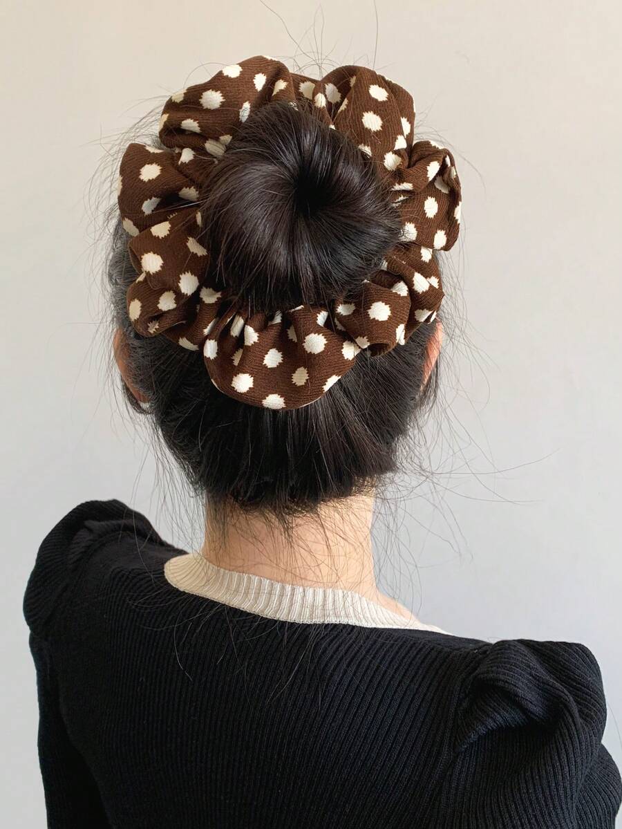 1 件波尔卡圆点超大发圈,厚灯芯绒纹理,多功能发饰,适合浓密的头发,秋冬颜色:米色、白色、黑色、发带、发圈