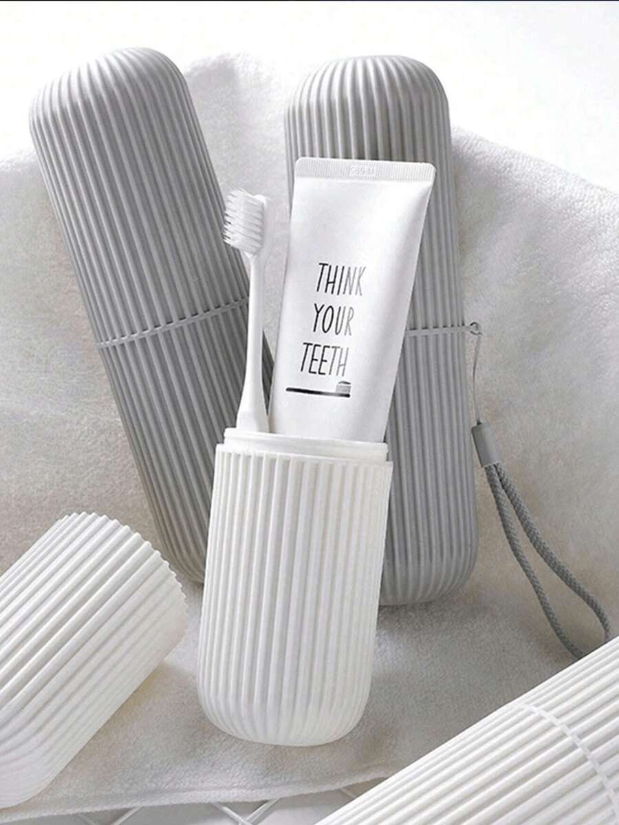 1 件便携式旅行漱口杯、牙刷和牙膏收纳盒、旅行露营牙刷杯、旅行洗面奶套装、旅行必需品、海滩和假日返校旅行收纳盒