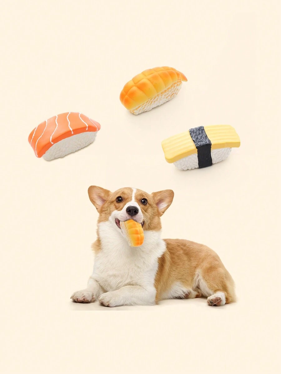 1入組隨機色乳膠壽司形狀咀嚼玩具適用於小狗