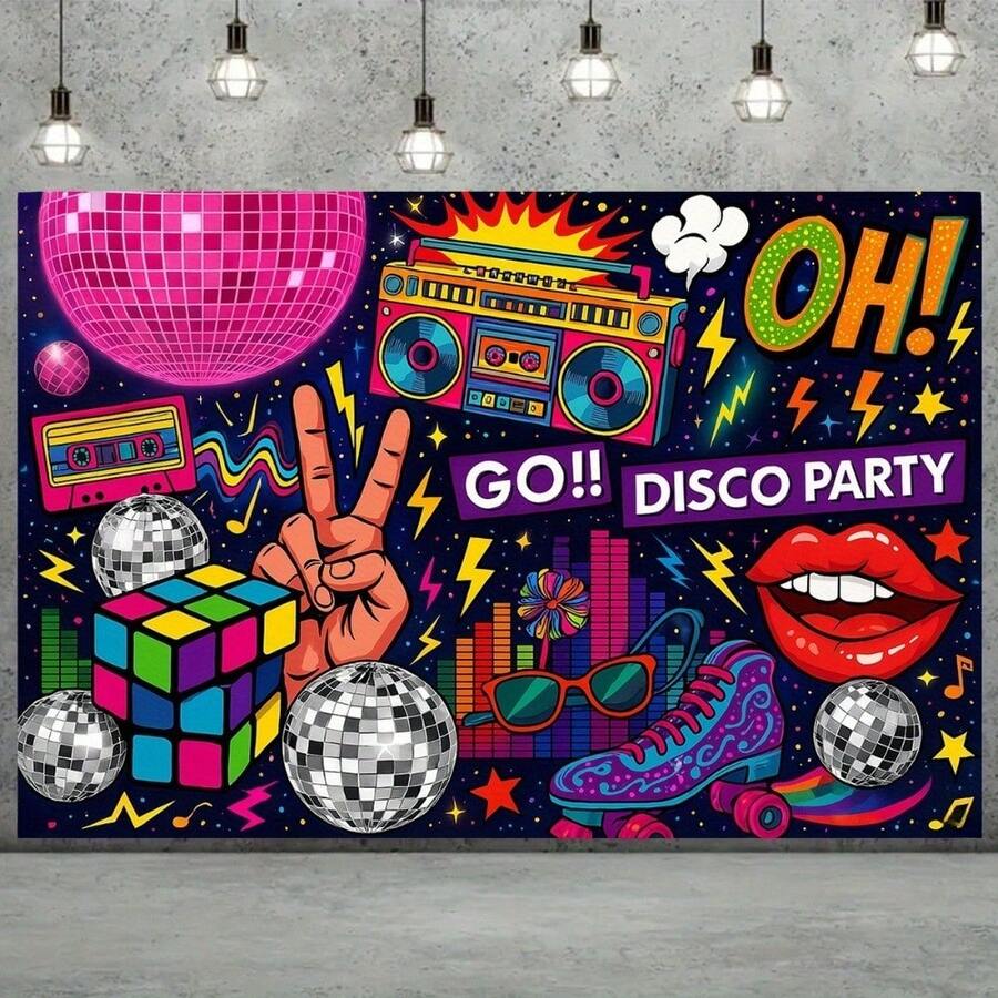 1 件复古 70 年代 80 年代 90 年代迪斯科派对横幅,耐用涤纶嘻哈背景,带迪斯科球和和平标志,适合生日
